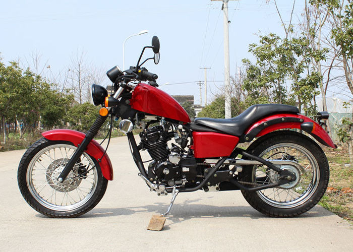 250cc red chopper motorcycle with 5 manual transmission and 90km/h speed low oil comsuption